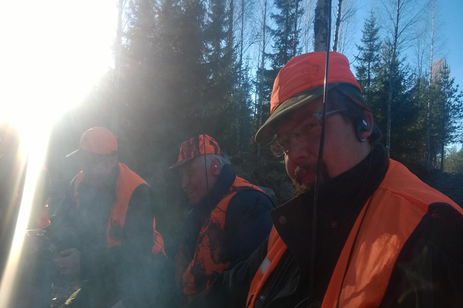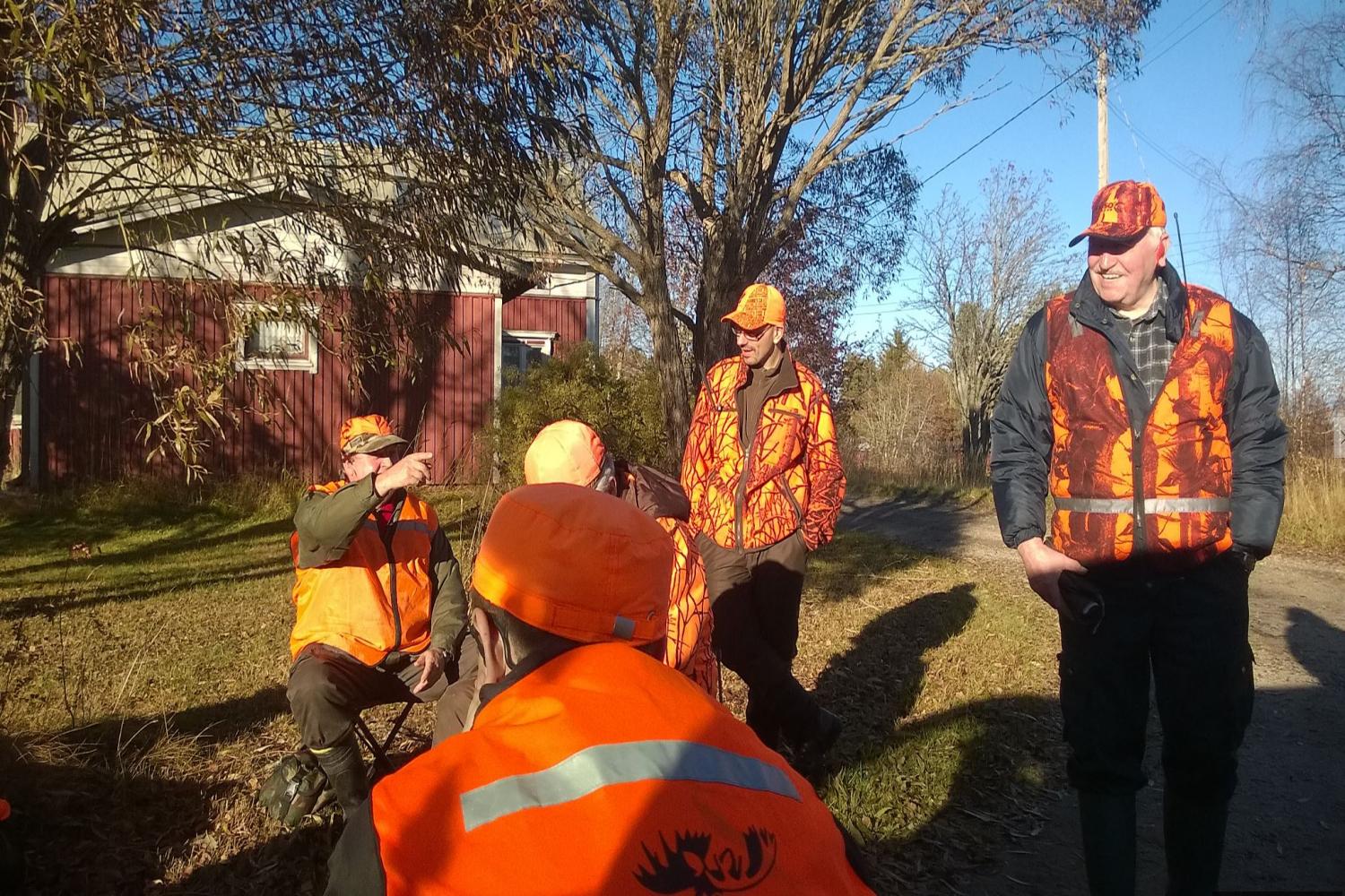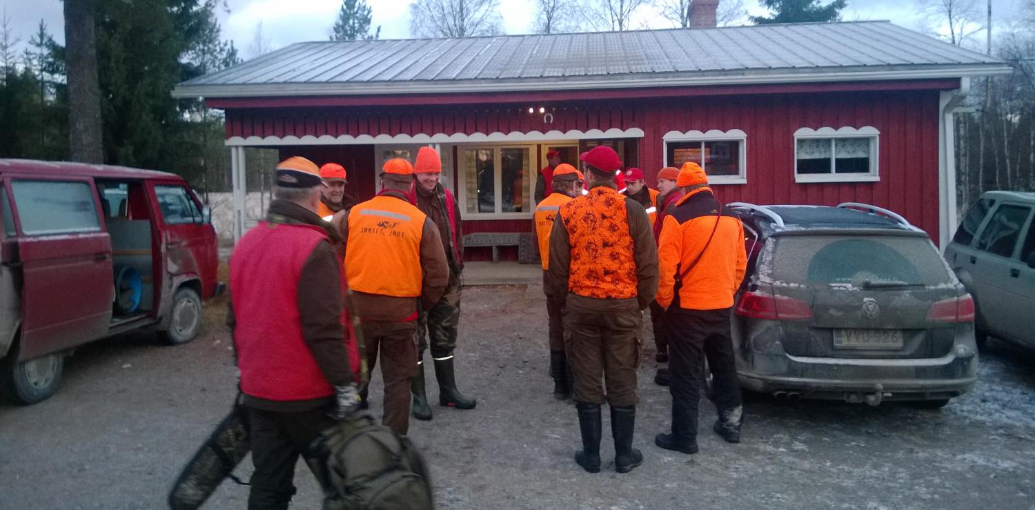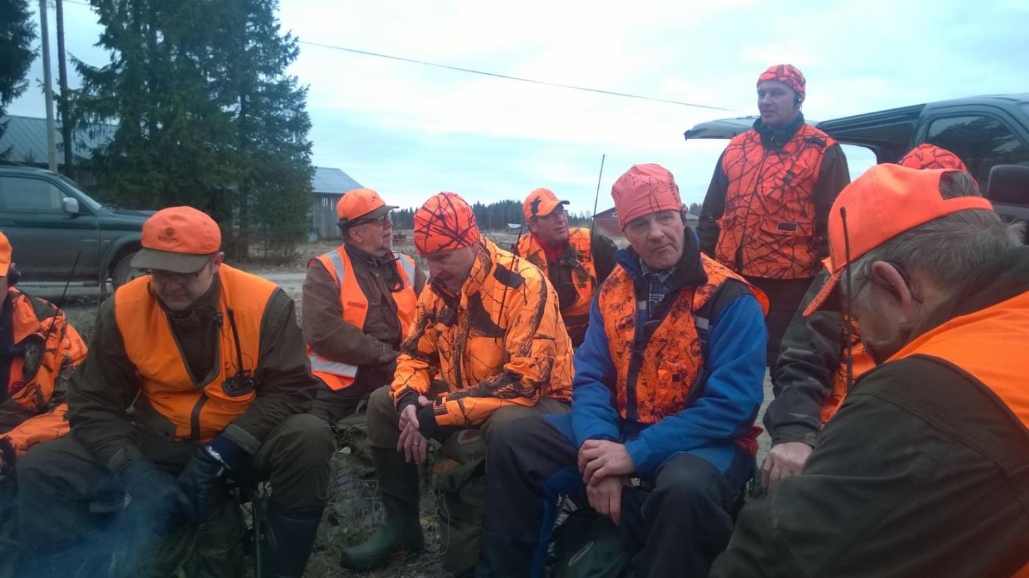 metsästäjistä oli vastaan, niin asiasta päätettiin luopua. Vuonna 1953 hankittiin porukan hirvikoiraksi Karjalan karhukoira ja tämän hoitajaksi päätettiin Mauri Hänninen. Tuona vuonna hirvenkaatoon sai osallistua ainoastaan 21 vuotta täyttänyt henkilö, jolla oli lain määräämä ase. Ajoryhmässä olleilla sai vielä tuolloin olla ase mukana muuta metsästystä varten. Hirvijahdin aikana saatettiin ampua esimerkiksi kettuja ja metsoja.