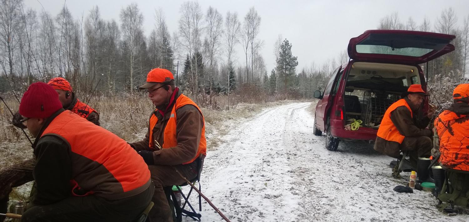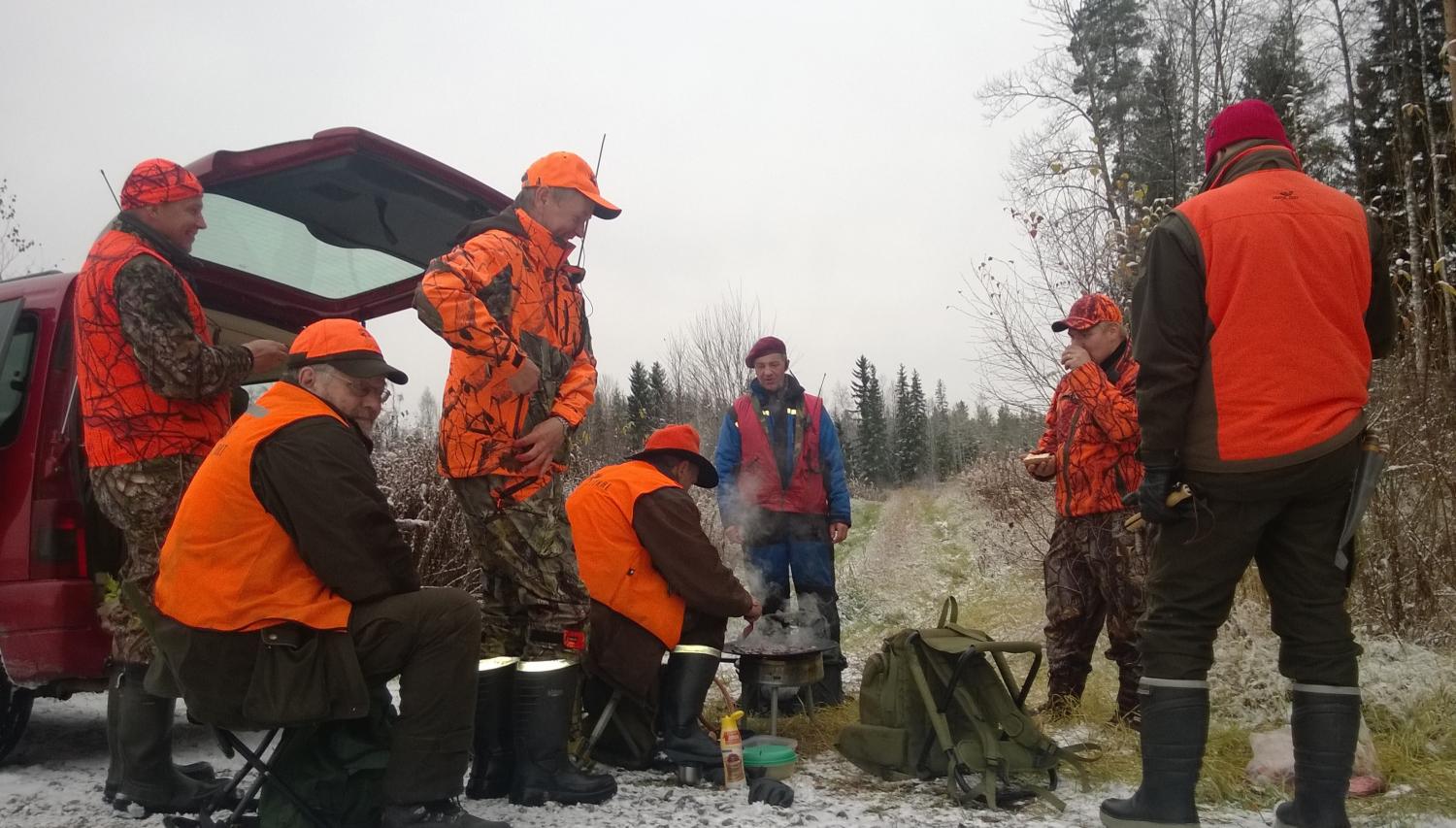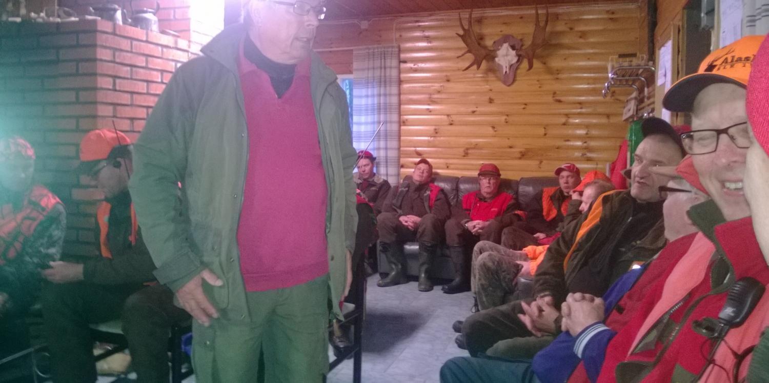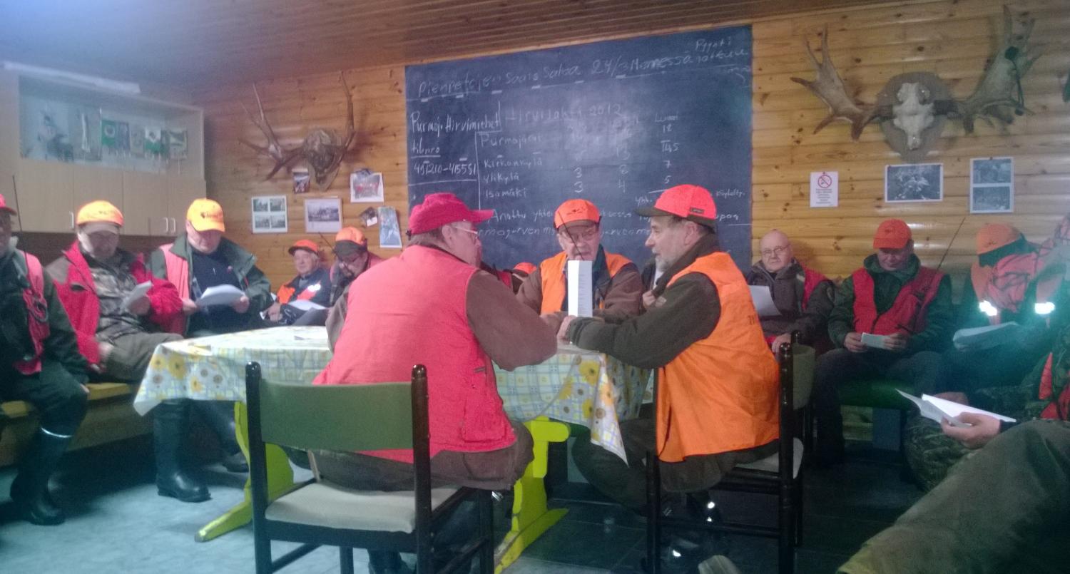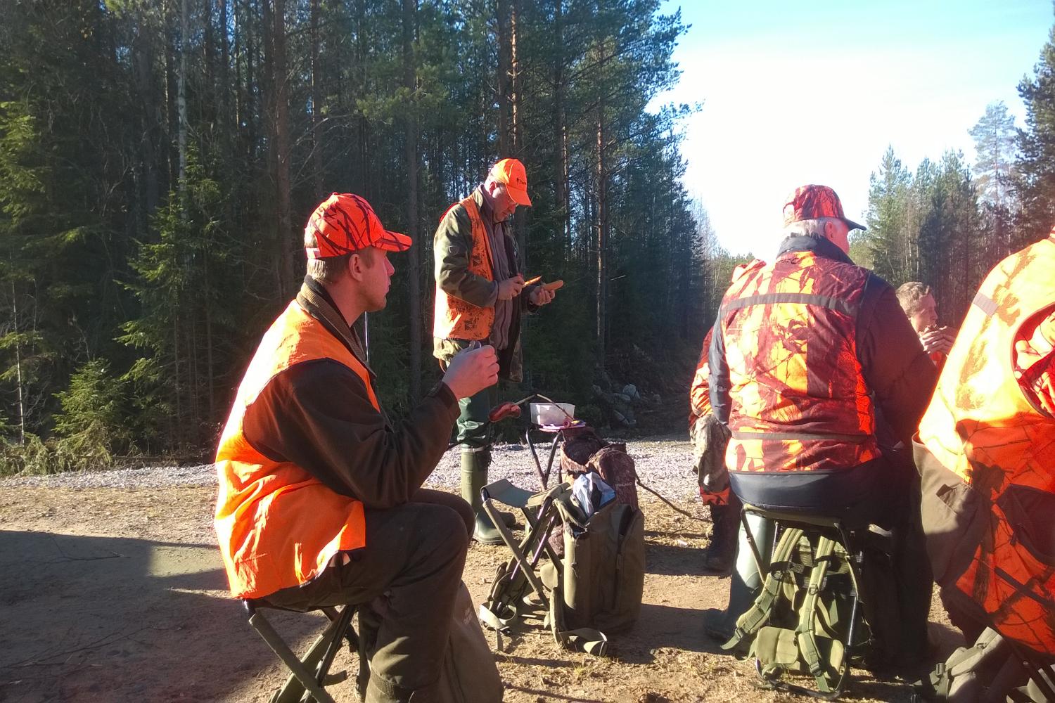 metsästäjistä oli vastaan, niin asiasta päätettiin luopua. Vuonna 1953 hankittiin porukan hirvikoiraksi Karjalan karhukoira ja tämän hoitajaksi päätettiin Mauri Hänninen. Tuona vuonna hirvenkaatoon sai osallistua ainoastaan 21 vuotta täyttänyt henkilö, jolla oli lain määräämä ase. Ajoryhmässä olleilla sai vielä tuolloin olla ase mukana muuta metsästystä varten. Hirvijahdin aikana saatettiin ampua esimerkiksi kettuja ja metsoja.